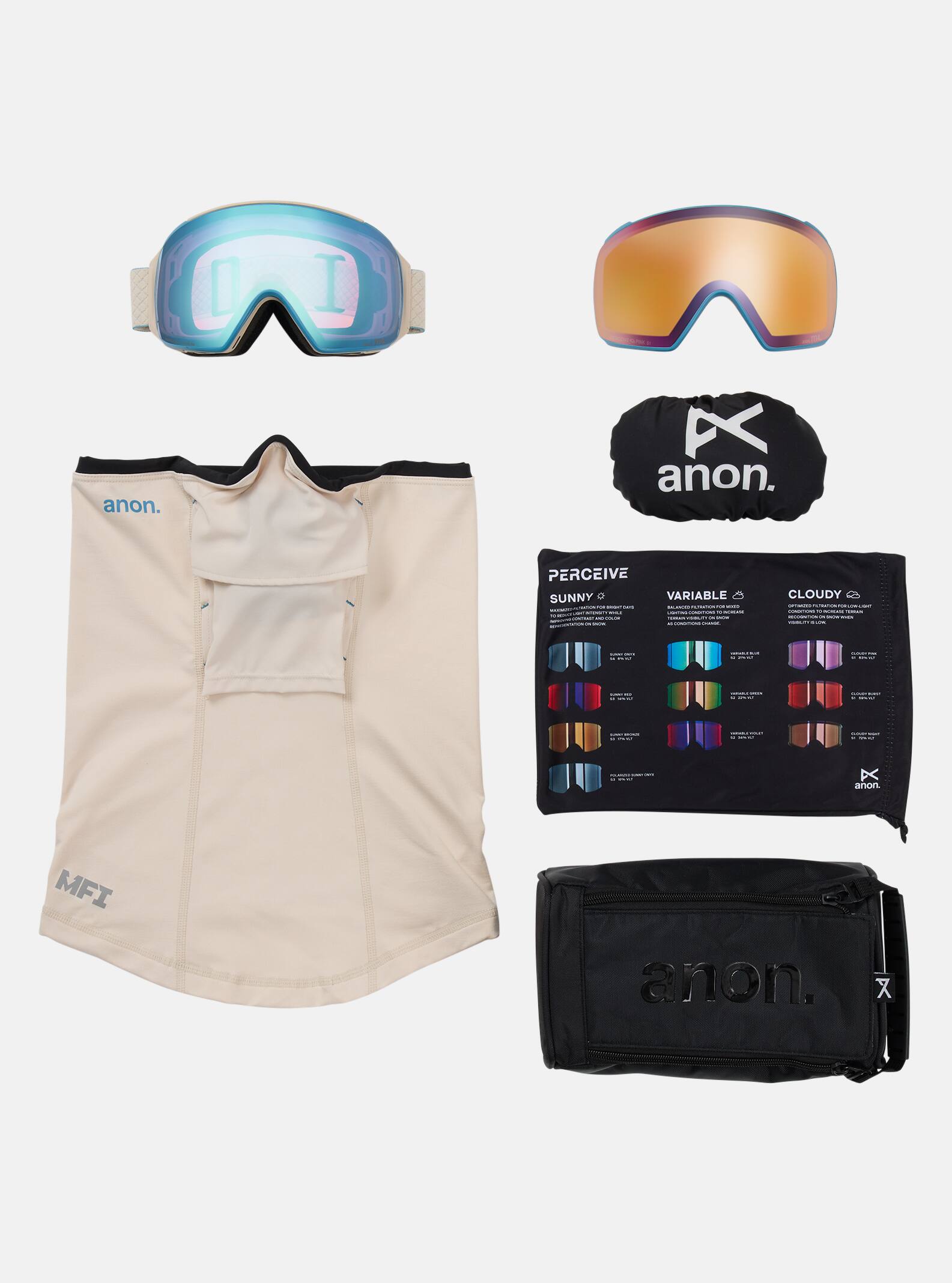 The Anon M4 Toric Goggles offer a precise helmet-to-goggle fit with the wide field of view and enhanced peripheral vision of a toric lens. Our innovative Magna-Tech® quick lens-change technology uses powerful rare earth N52 magnets to make lens changes easier than ever. The M4 offers the unprecedented versatility to switch between toric and cylindrical style lenses. This edition of the M4 includes two toric lenses featuring Perceive optics for high-contrast, terrain-defining clarity and our best anti-fog treatment for crystal clear vision through a wide range of conditions. Magnetic Face Mask Integration (MFI®) provides seamless face mask attachment, and full-perimeter vents maintain consistent airflow for fog-free clarity. Includes a paneled MFI face mask, a Magna-Tech goggles storage case, and an elastic lens protector.