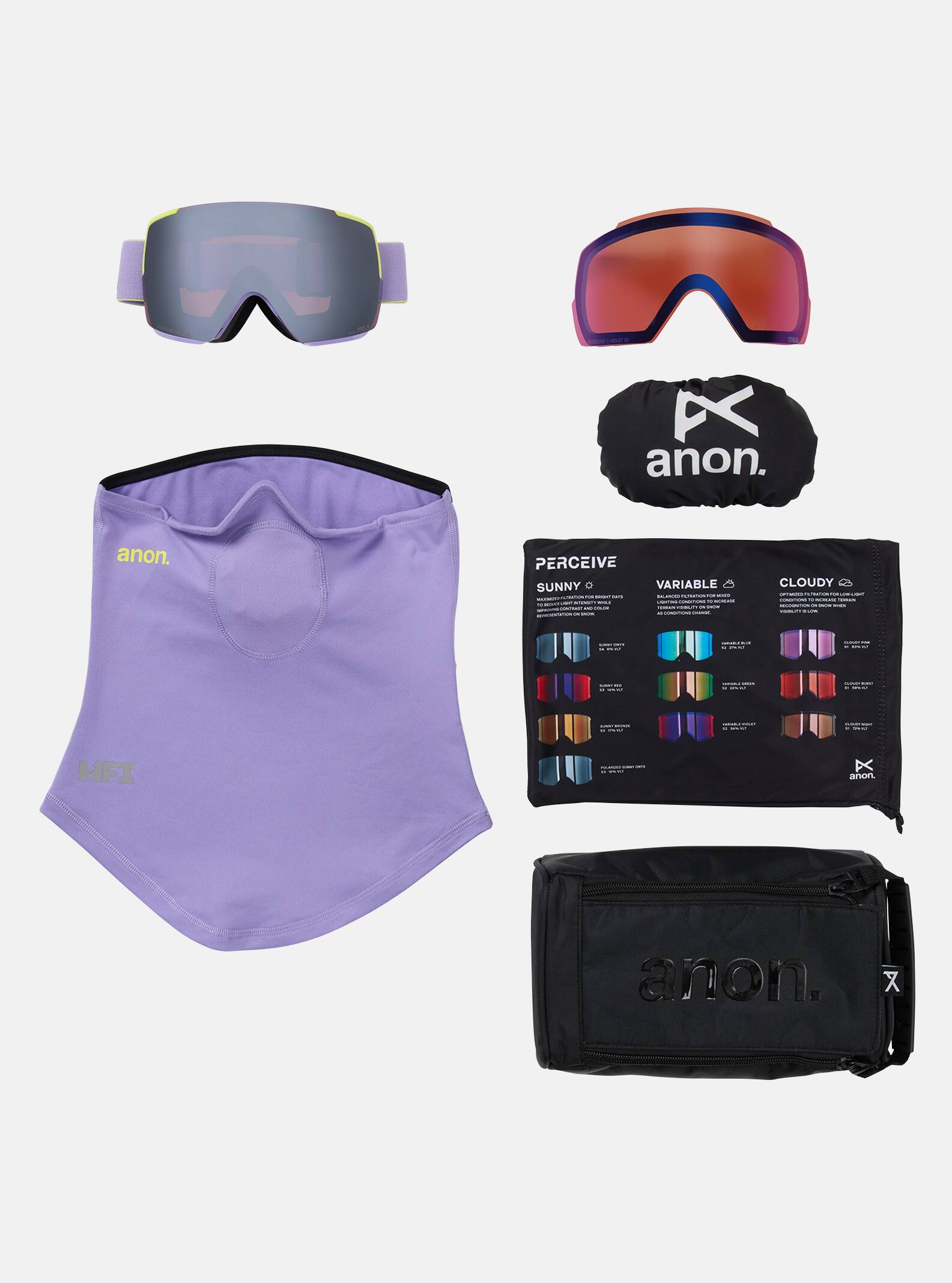 The Anon M5S Goggles feature the same high-end performance and modern aesthetic of the M5 Goggles in a frame scaled for smaller faces. They offer a precise, comfortable helmet-to-goggle fit with the wide field of view and enhanced peripheral vision of a flat toric lens. Our innovative Magna-Tech® quick lens-change technology uses powerful rare earth N52 magnets to make lens changes easier than ever. Perceive optics provide high-contrast, terrain-defining clarity with our best anti-fog treatment for crystal-clear vision through a wide range of conditions. Magnetic Face Mask Integration (MFI®) provides seamless face mask attachment, and full-perimeter vents maintain consistent airflow for fog-free clarity. Includes a bonus lens for cloudy conditions, a lightweight MFI face mask, a Magna-Tech goggles storage case, and an elastic lens protector.