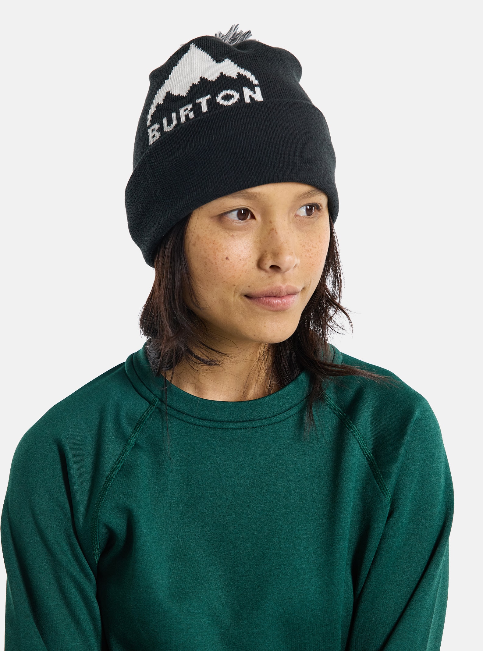 A pom and fold-up cuff lets you dial in the style.