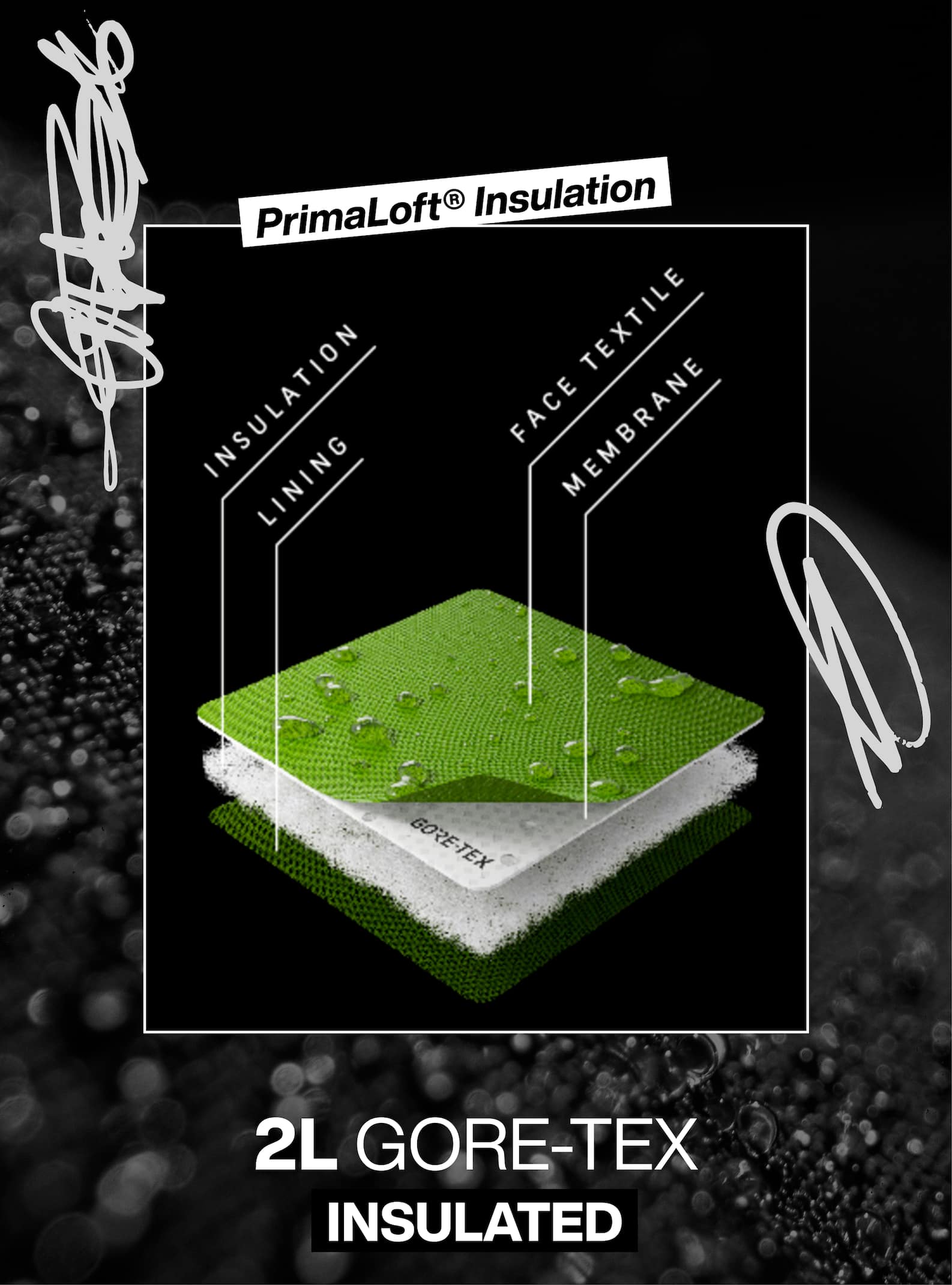 GUARANTEED TO KEEP YOU DRY™ GORE-TEX 2L is waterproof, windproof, breathable, and durable to keep you on the move in all weather, period.