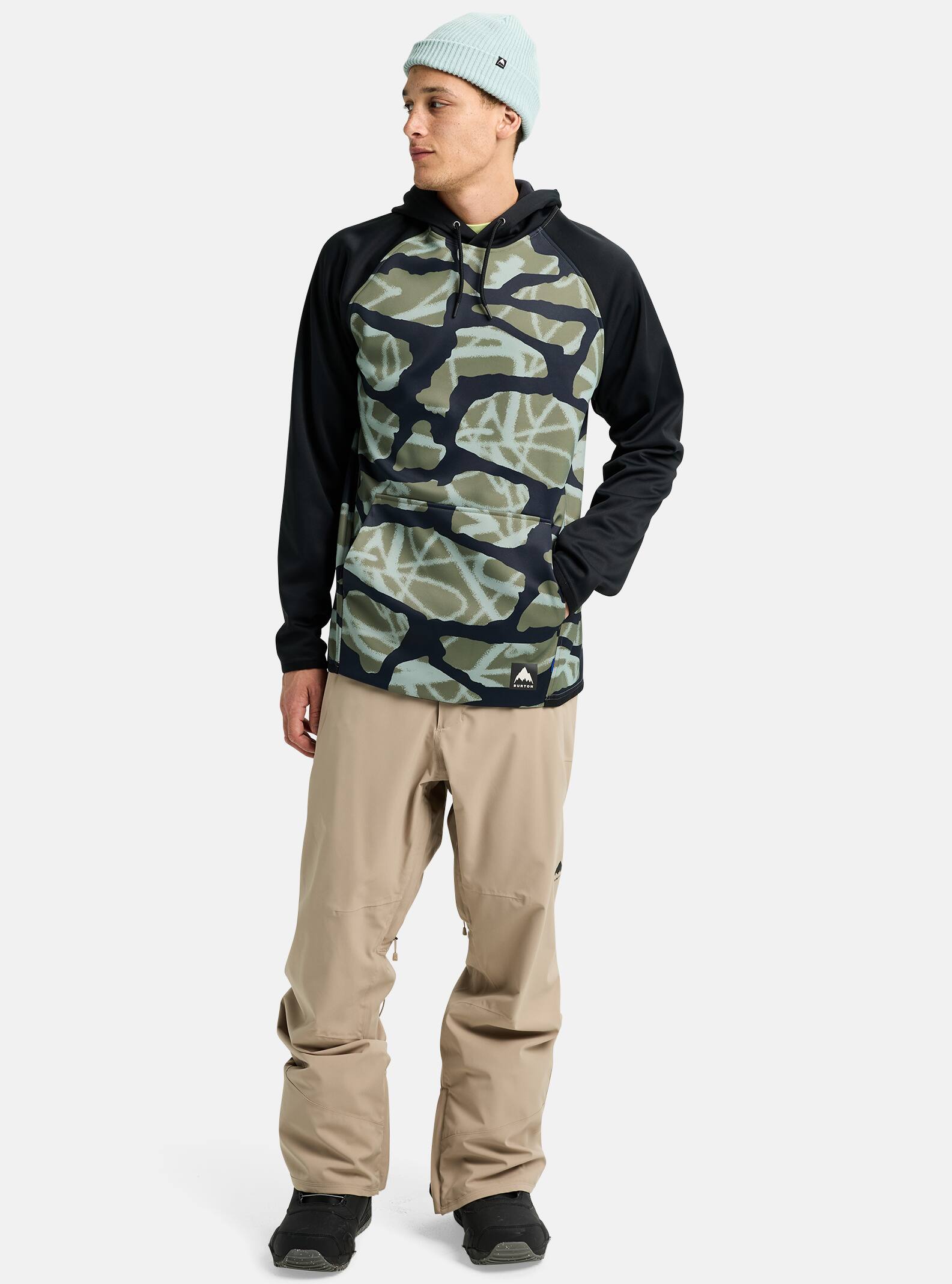 Riding all day in your cotton hoodie sounded like a good idea until you started getting wet and cold. Well, the men’s Burton Crown Weatherproof Pullover Fleece is techy enough for mountain days and laid-back enough for chilling in town. It’s the answer to riding all day in a sweatshirt. Pull up the hood and consider yourself ready for just about any weather.