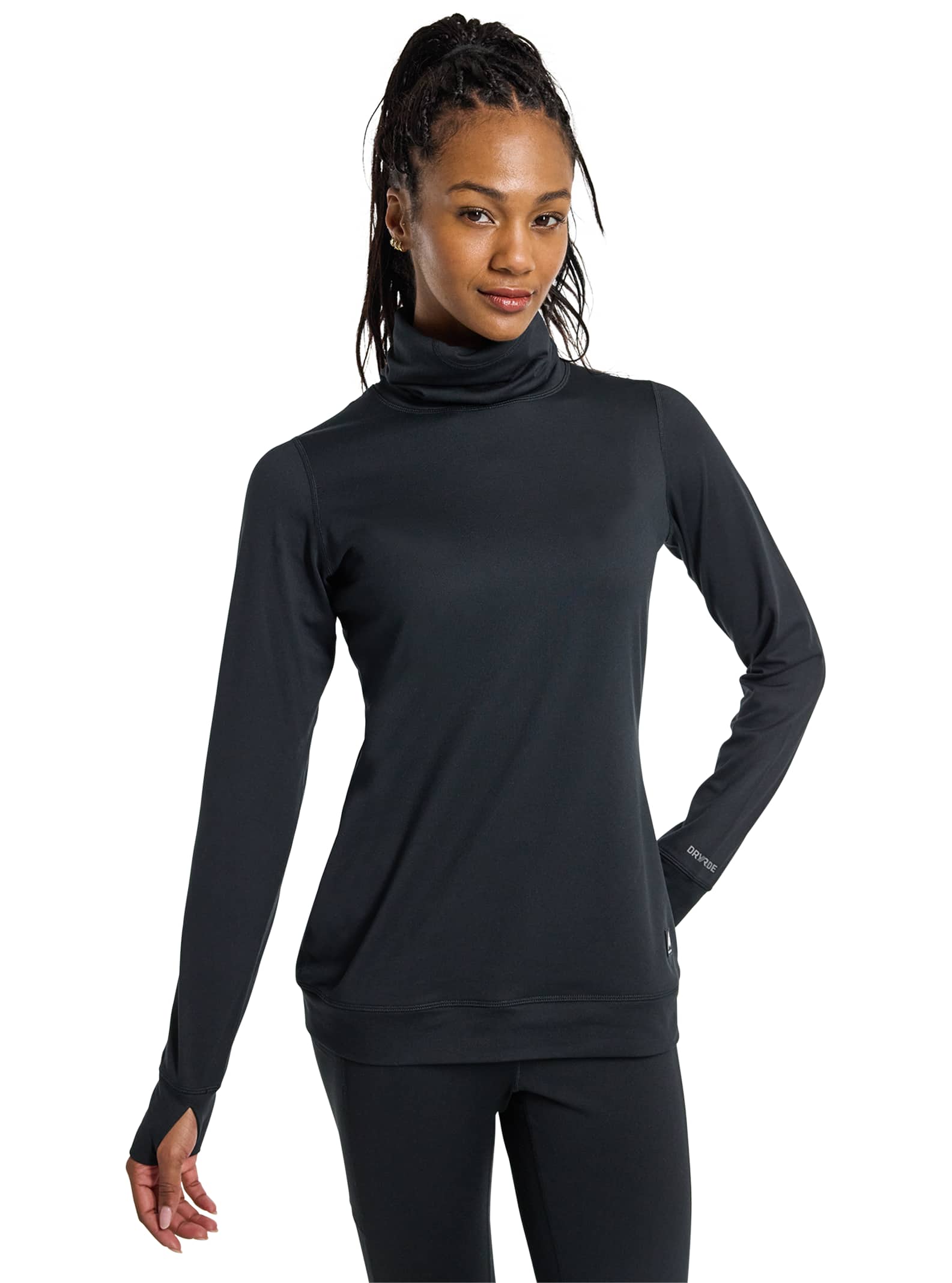 If go-to versatility is what you seek, the women’s Burton Midweight Long Neck Shirt balances warmth, breathability, and quick-drying performance with built-in climate control that you can count on all season. And when the weather has harsher plans, the neck extends to become a built-in neck warmer.